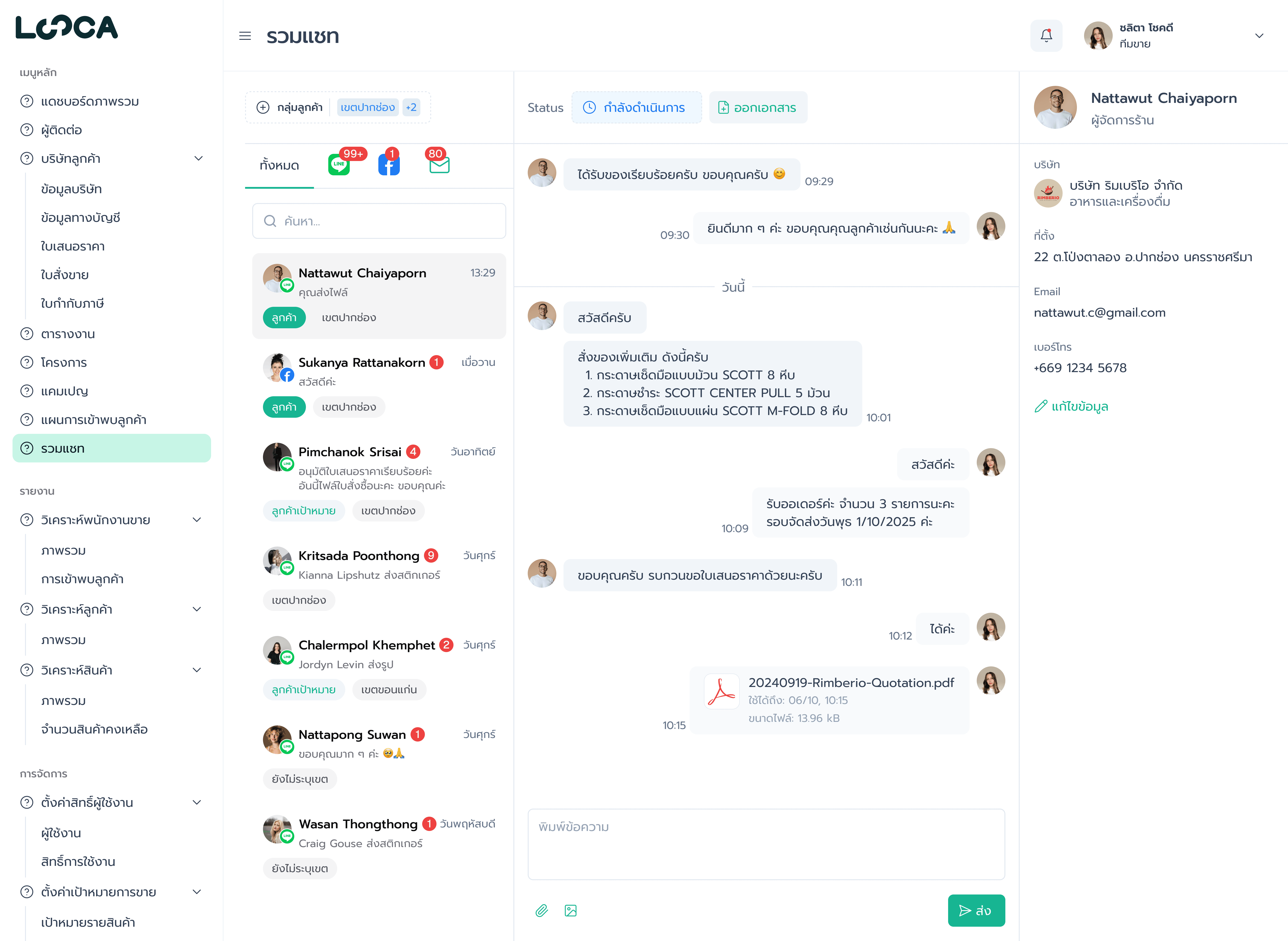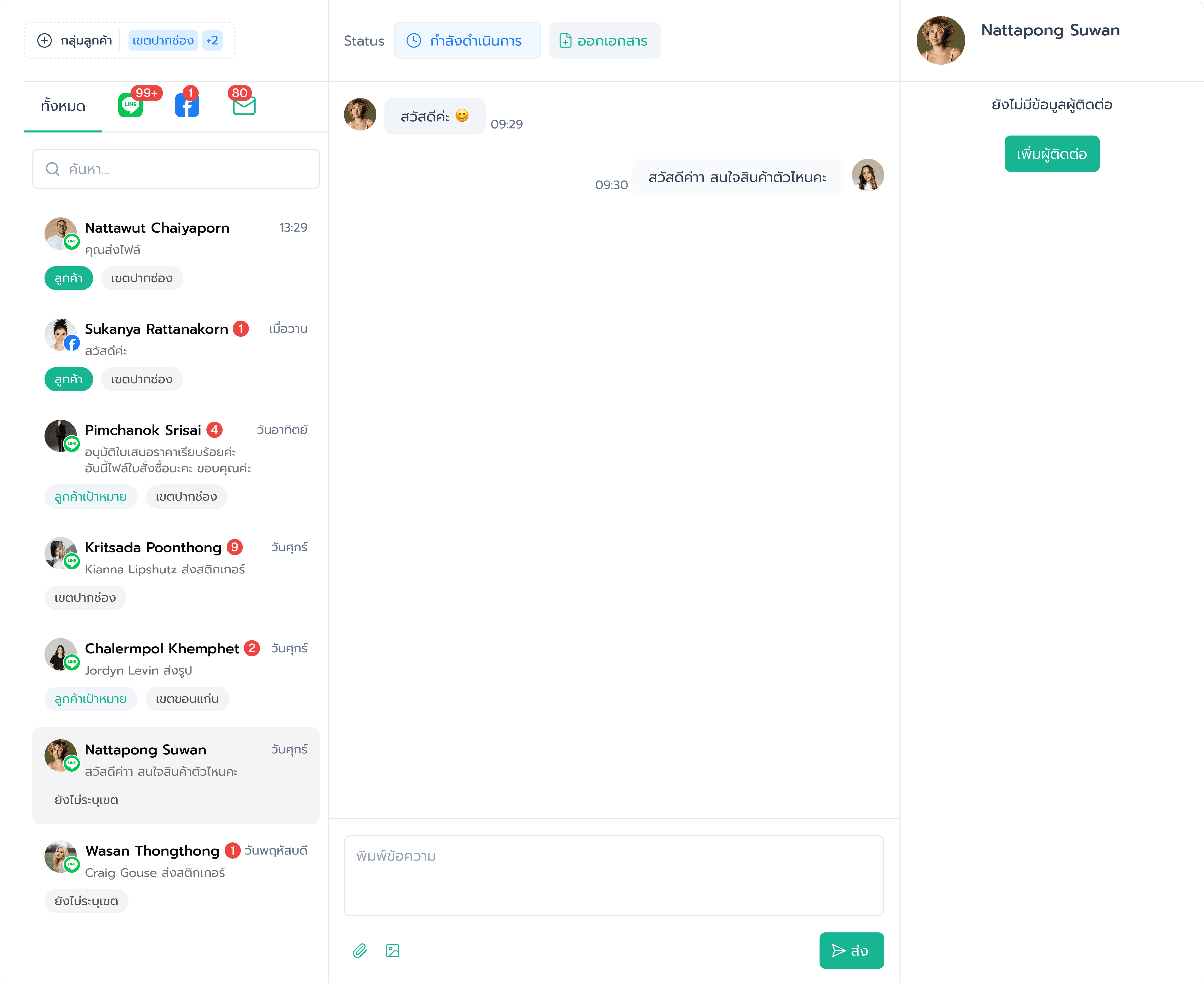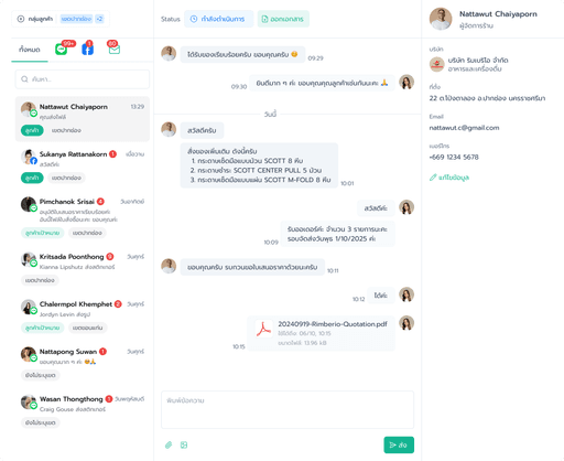Bring chats from LINE OA, Facebook, Instagram, website, or marketplace into one place.